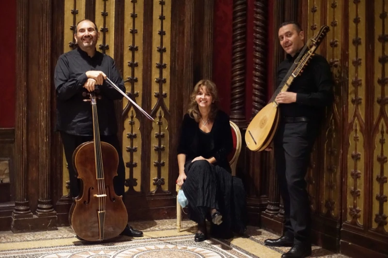 Insalata musicale di ostinati, danze, fantasie et altro, per viola da gamba, arciliuto, chitarra alla spagnola, cembalo e voce. Questo concerto è il frutto di ricerca sulle fonti originali: trattati, musiche, stampe, manoscritti e cronache dell’epoca. Abbiamo approfondito il repertorio di un periodo forse tra i più ricchi, vari e oridi della musica italiana: quello che va dalla ne del 500 al primo seicento. La nostra attenzione è stata rivolta alla musica vocale e le sue potenzialità espressive, e a quella strumentale che andava emancipandosi come genere autonomo. Molti i compositori che lavorano in un momento storico così ricco di fermenti artistici, i quali riscoprono la forza espressiva del canto monodico ispirato alla presunta usanza degli attori classici di “recitar cantando”. Ed è proprio il peso e l’importanza che si da alla forma del “recitar cantando”, alla valorizzazione del testo poetico attraverso la gestualità, che porta lentamente, nella coeva opera lirica, benché agli inizi e in via di sperimentazioni continua, a guadagnarsi immensi favori e consensi in tutta Italia. Il nostro percorso esecutivo vuole rispecchiare nella forma l’idea stessa dell’opera alternando arie vocali a brani strumentali di autori famosi come G. Kapsberger, D. Ortiz, G. Frescobaldi, T. Hume, G. Sanz, che hanno valorizzato strumenti come la tiorba, la chitarra barocca, la viola da gamba, il clavicembalo e non ultima la voce. I testi ripercorrono i diverse aspetti dell’amore attraverso le allegorie tipiche del tempo. E allora le labbra diventano “rose purpurine” e piene di spine, o “porta del riso”, che custodiscono grandi tesori che dicilmente si schiuderanno per baciare l’amato. Gli occhi sono lumi che lanciano lampi di luce e le lacrime sono paragonate a fontane e umi. Questo è il canto dell’amore e della bellezza inaerrabile della propria amata, la cui dura sorte fa cadere il nostro amante in sventura. Proprio Orfeo canta e prega i Numi infernali anchè, da vedovo amante, possa riportare la sua cara consorte dagli Inferi. Amori che partono via, lontano e che fanno morire la speranza. Con la lontananza vedono avvicinarsi la morte come unica soluzione di sollievo, dopo una distruzione come neve al sole. Ed ecco che ai madrigali sono intercalati, nella stessa struggente atmosfera, brani strumentali che ne ricalcano gli affetti appena narrati, è così per le altre allegorie, con altri autori che ne descrivono musicalmente, diversi stati d’animo nei quali ognuno potrà riconoscersi.