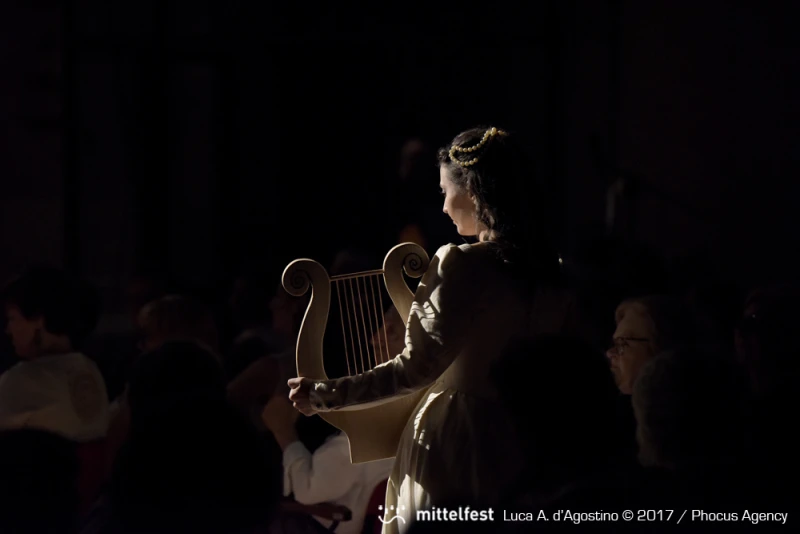 Madrigalisti Maria Dalia Albertini Valentina Vitolo Vittoria Giacobazzi Isabella Di Pietro Simone Milesi Michele Concato Guglielmo Buonsanti Cenacolo Musicale Marco Rosa Salva e Fabiano Martignago - Flauti Laura Scipioni e Filippo Bergo- Violini Gioele Gusberti – Violoncello Daniele Carnio - Violone Elisa La Marca - Tiorba Donatella Busetto – Cembalo Mimo - Agnese Perri Regia Marco Bellussi Progetto scenico Matteo Paoletti In collaborazione con DansAtelier - Centro Formazione Danza - Elisabetta Galli - Treviso